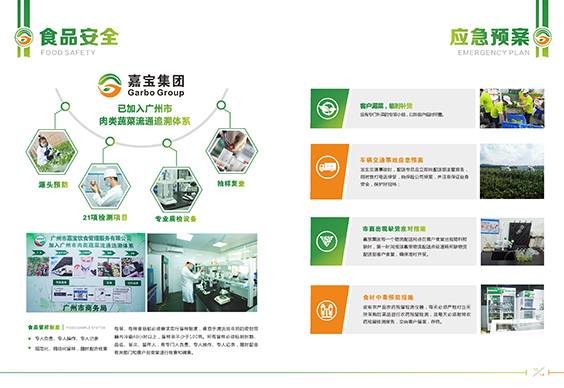 嘉寶食品集團(tuán)有限公司,注冊(cè)資金 5000 萬(wàn),始創(chuàng)于 2008 年,旗下有廣東嘉寶食品供應(yīng)鏈有限公司、惠州市嘉寶供應(yīng)鏈管理有限公司、浙江豐勝農(nóng)產(chǎn)品有限公司,嘉寶花都分公司、天河分公司。歷經(jīng)十余年風(fēng)雨洗禮,不斷發(fā)展創(chuàng)新,在餐飲管理、農(nóng)副產(chǎn)品配送領(lǐng)域積累了寶貴的經(jīng)驗(yàn),擁有完善的生產(chǎn)、加工、運(yùn)輸配送服務(wù)體系,配送專(zhuān)用占地 10000 多平方米,各設(shè)有加工車(chē)間、果蔬類(lèi)初加工區(qū)、肉類(lèi)初加工區(qū)、庫(kù)房、冷庫(kù)、運(yùn)輸車(chē)及各種規(guī)格的周轉(zhuǎn)箱等完善的生產(chǎn)、加工、儲(chǔ)存、運(yùn)輸設(shè)備,配備有食品安全檢測(cè)區(qū),能夠?qū)κ卟恕⒐瞎仁称愤M(jìn)行安全檢測(cè),強(qiáng)有力的保證了蔬菜的安全、新鮮、營(yíng)養(yǎng)。